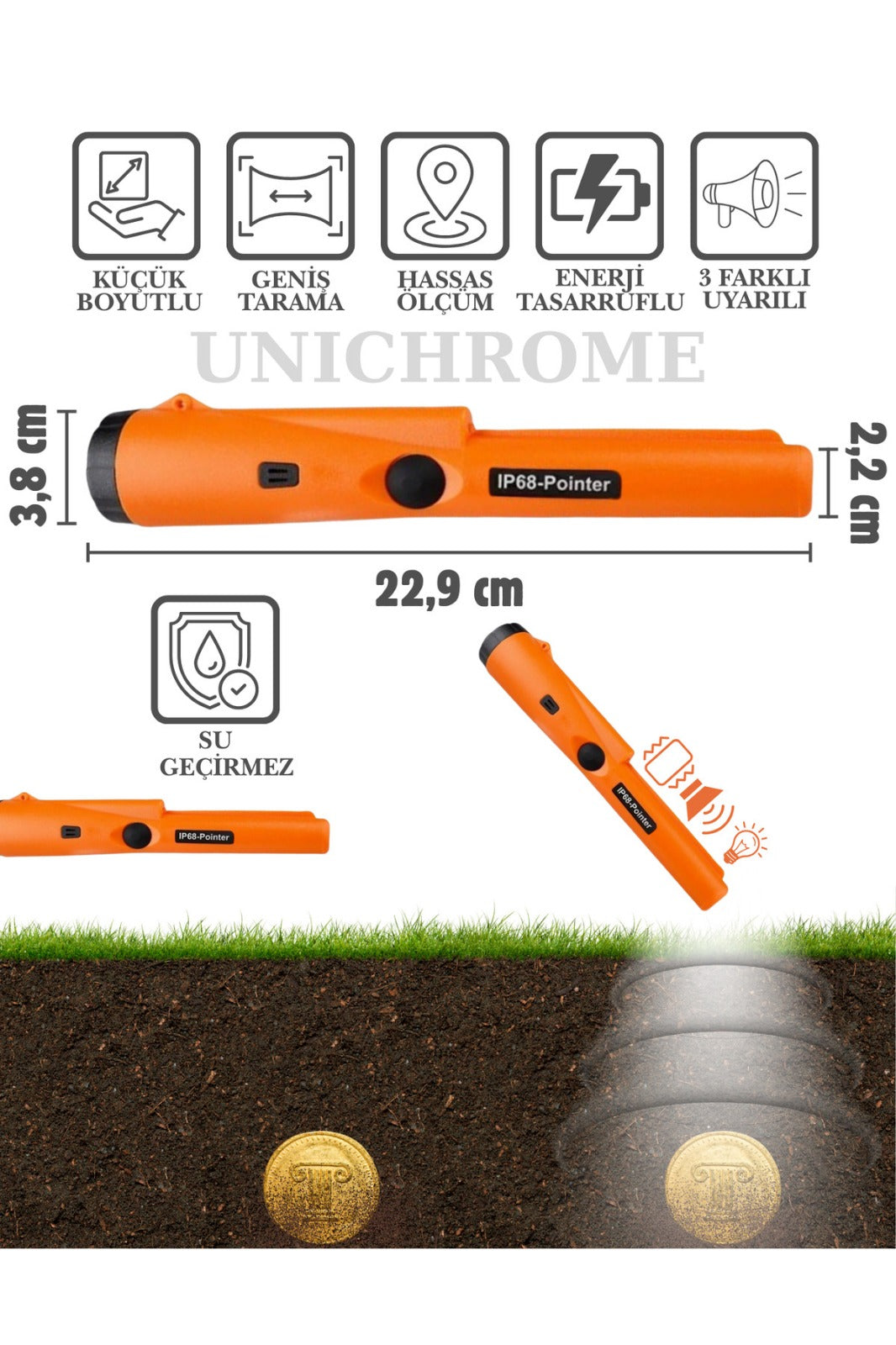 Gelişmiş sinyal işleme teknolojimiz sayesinde, derinlerdeki küçük altın parçacıklarını bile diğer dedektörlere göre %95 daha net ayırt eder.